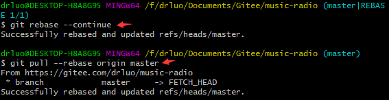 执行完之后如果无错误就上传成功了(这里的 master 是 gitee 默认的分支