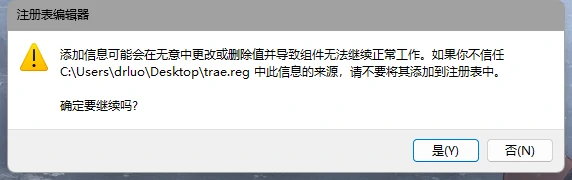 并重命名文本文档为trae.reg