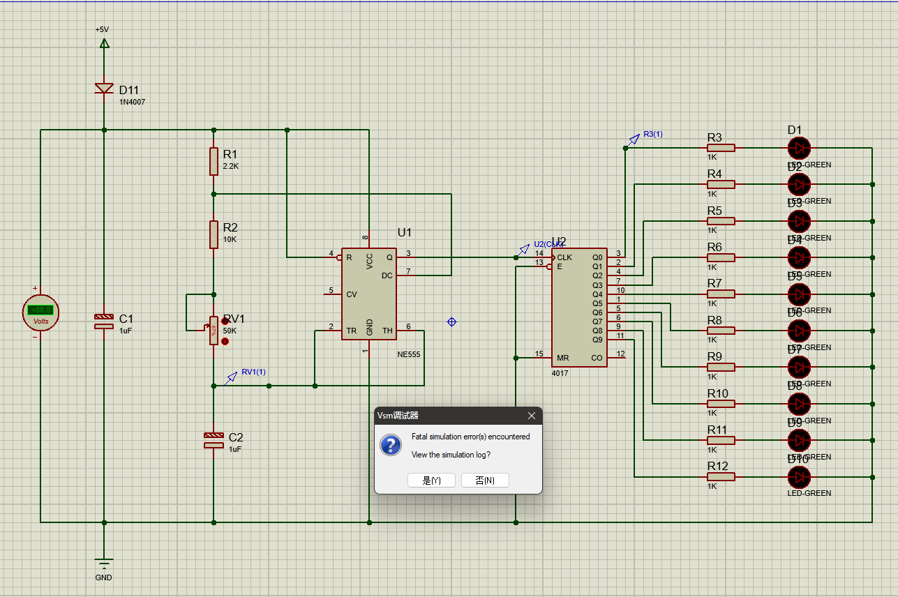 使用Proteus中ne555仿真时,遇到了仿真报错: