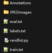 数据集的准备(包括图片文件,图片数据标注文件,训练文件train.txt 测试文件eval.txt 标签文件labels.txt)