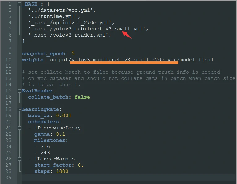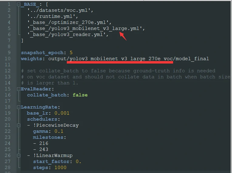 我们复制yolov3_mobilenet_v3_large_270e_voc.yml 将其更名为yolov3_mobilenet_v3_small_270e_voc.yml